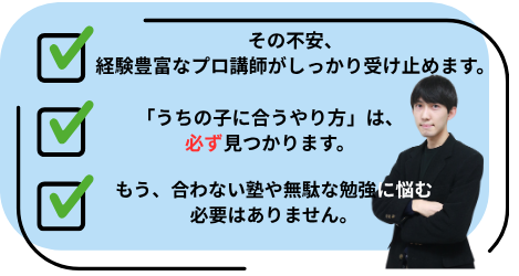 難関大在籍の実力派講師をお子様の性格と学力に合わせ徹底マッチング。
